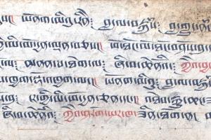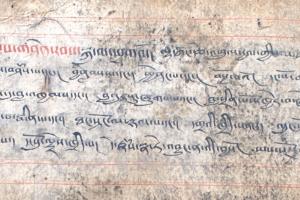 Kye kye! In the thousand-times-three thousand worlds, in the thousand worlds of the four interstices, is a varicoloured fire-god. The rider is varicoloured, and so is the horse he rides. He has a varicoloured dog, and his varicoloured bird soars. He holds a varicoloured lance in his hand. He looses varicoloured arrows and casts a varicoloured noose. Demigod of the insterstices, ruling over the realm (bdag err for khams?) of the interstices, if you have stolen or harmed the soul of this little one, our precious patron, I offer you this soul-ransom...(etc.)