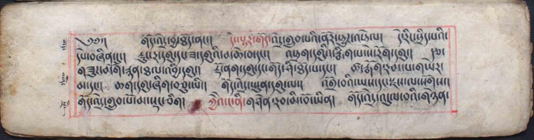 Line 7, ra dgu: translated here as “all kinds of horns” (rwa dgu), it may also stand for the colloquial term *ra go, signifying hard dry skin (TY)